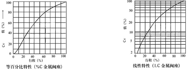 流量特性:金属阀座 等百分比特性(%)和线性特性(L),参考流量特性曲线图